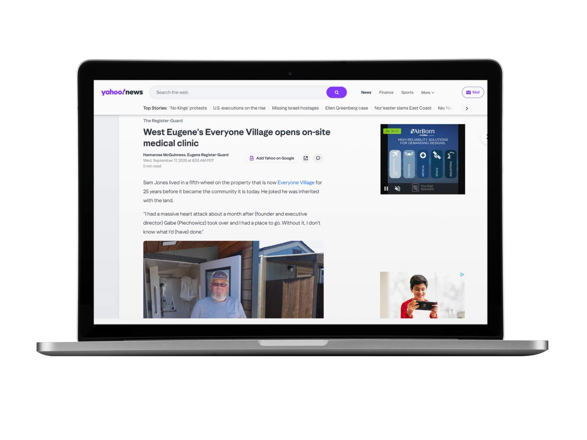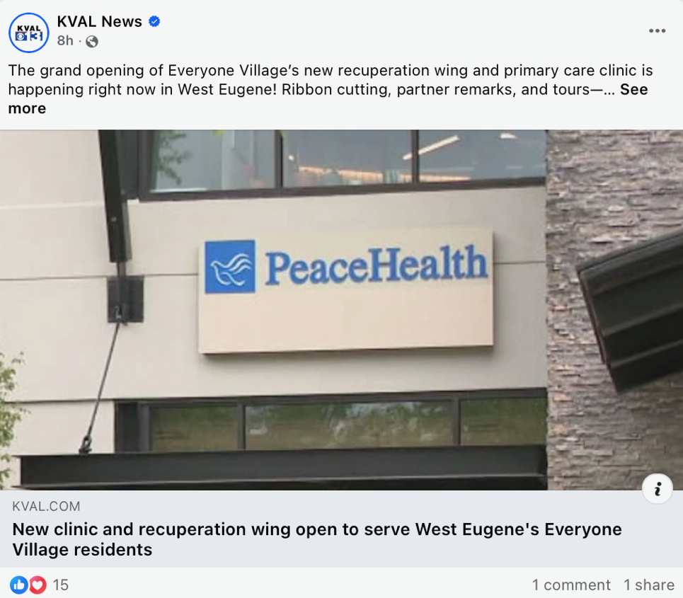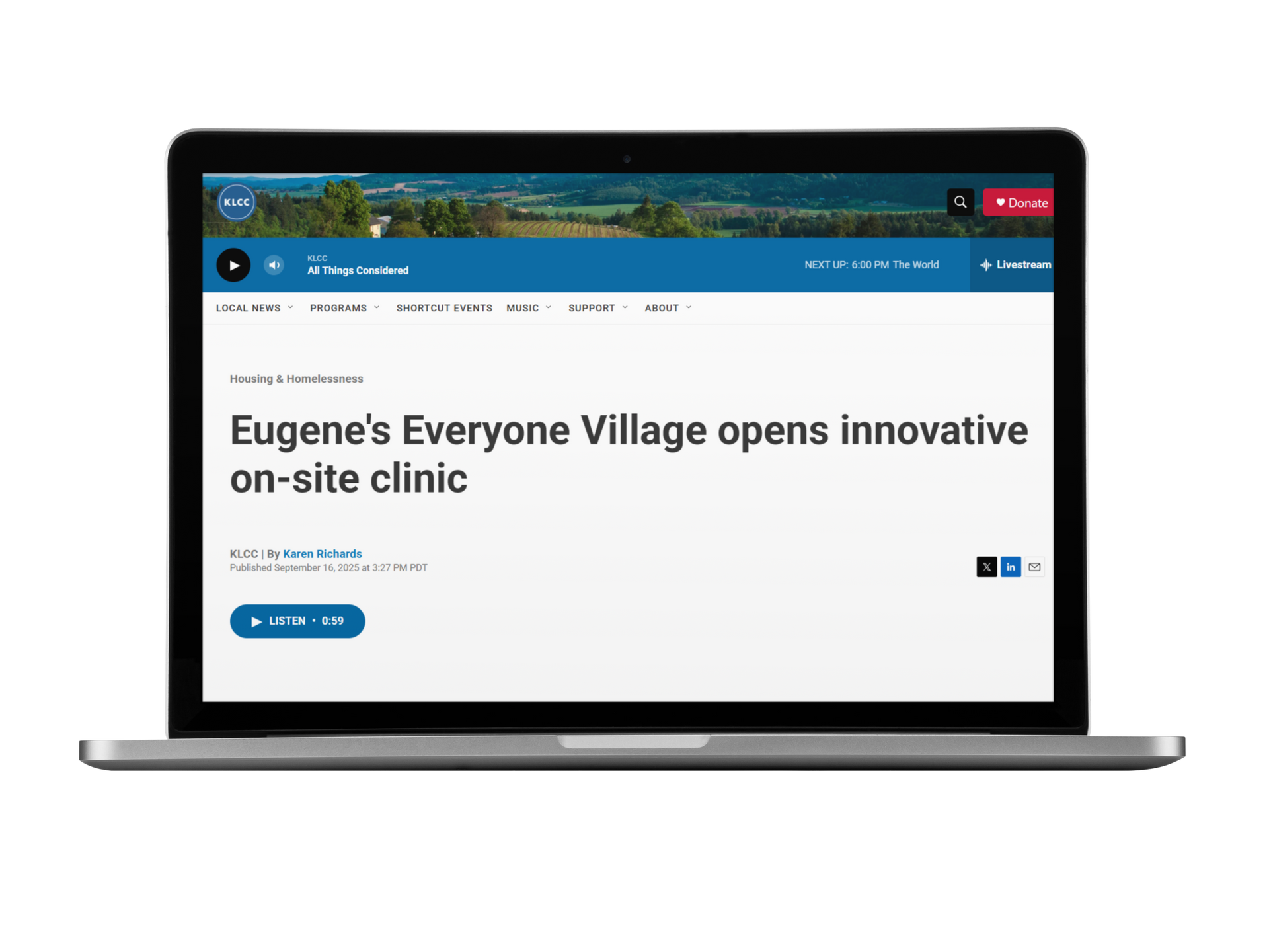 - “West Eugene’s Everyone Village opens on-site medical clinic” Yahoo News