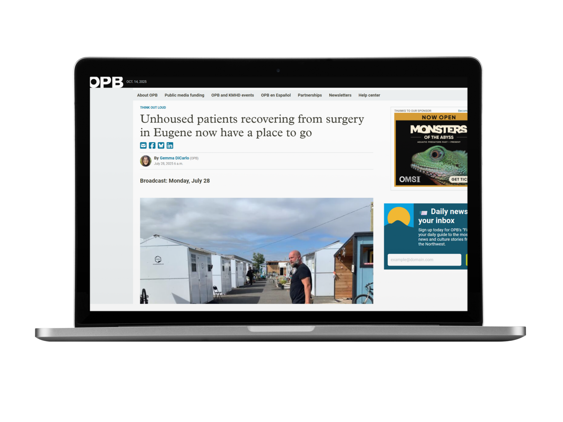 - “Unhoused patients recovering from surgery in Eugene now have a place to go” OPB