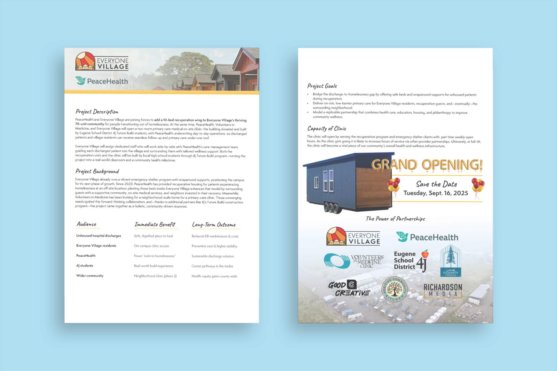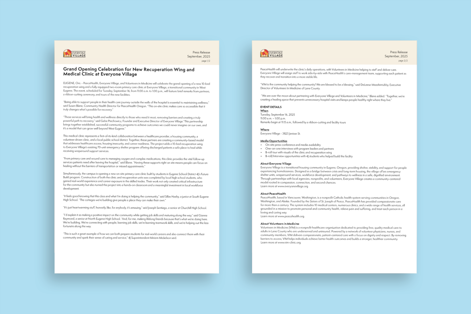 Our team partnered with PeaceHealth, Eugene School District 4J, and Volunteers in Medicine to build a full-scale PR campaign for the launch